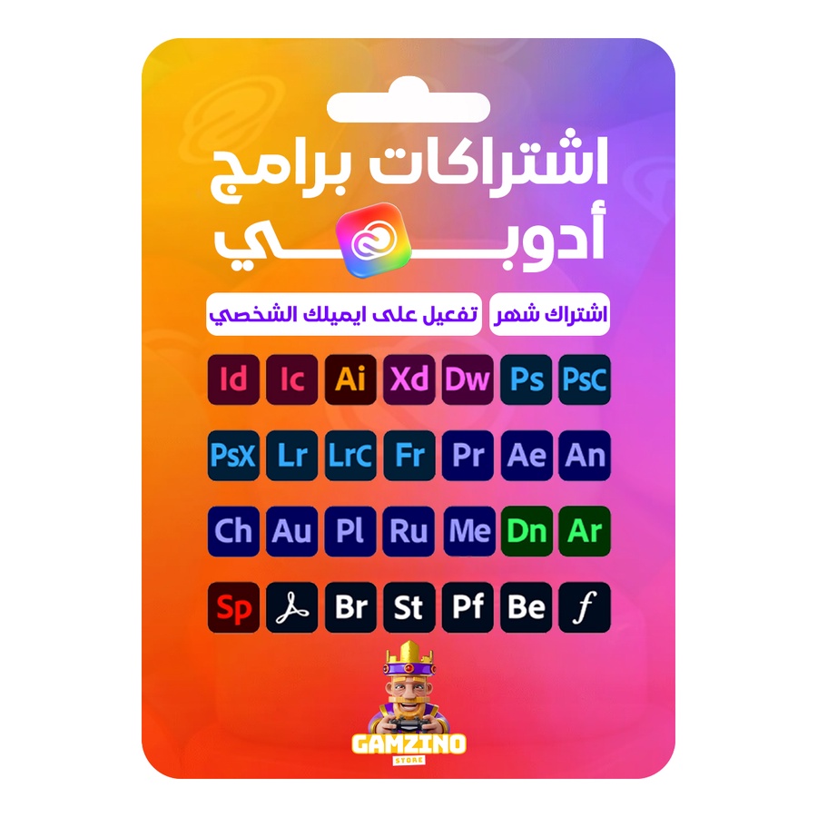 اشترك في Adobe Creative Cloud لمدة شهر من جيمزينو ستور واحصل على جميع برامج أدوبي الأصلية بتفعيل سريع وسعر مميز ودعم فني مضمون للمصممين وصناع المحتوى 🎨🚀